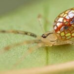 The giraffe weevil is sexually dimorphic, with the neck of the male typically being 2 to 3 times the length of that of the female. The total body length of the males is just under 2.5 cm. Most of the body is black with distinctive red elytra covering the flying wings. They can use this extended neck to fight for the right to mate with a female. Female weevil uses her smaller neck to roll a leaf tube, into which a single egg is layed.